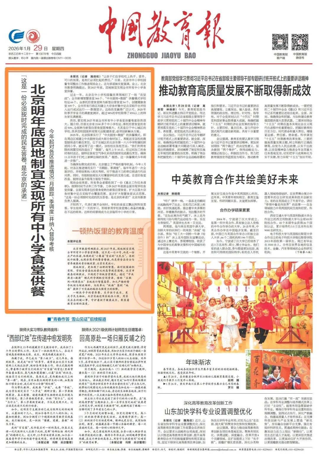 一顿热乎乎的营养餐,关乎孩子成长,更关乎民生福祉。北京实施这项系统性工程,用实实在在的暖心事,守护着孩子健康成长,彰显着教育治理的温度。