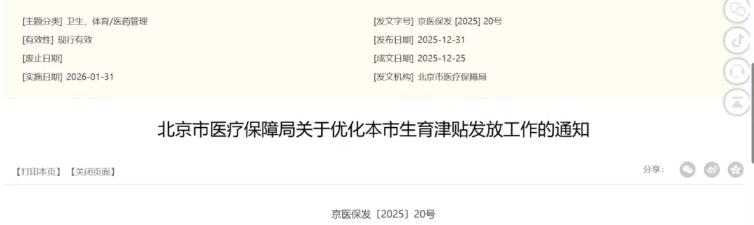 12月31日,《北京市医疗保障局关于优化本市生育津贴发放工作的通知》(以下简称《通知》)正式发布。