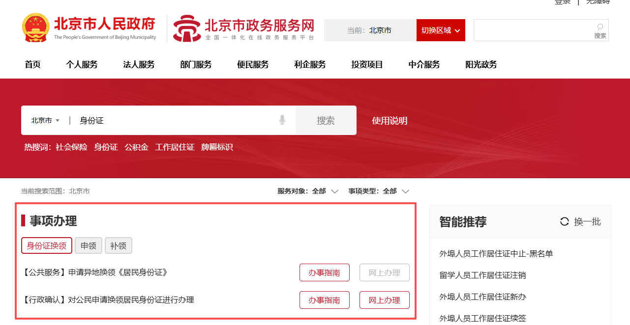 北京居民身份证“全程网办”服务
