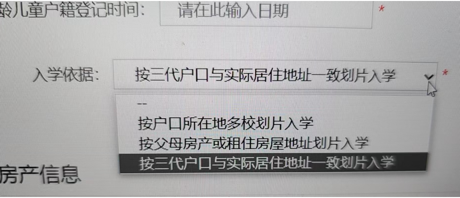 参考信息采集系统要求来看,京籍幼升小以四老房产入学需要在入学户籍类型选择“以户口入学”,入学房产依据选择“按三代户口与实际居住地址一致划片入学”。