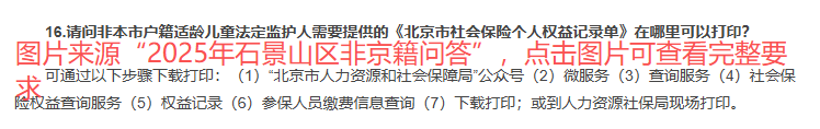 非本市户籍适龄儿童法定监护人,在为孩子办理入学等事务时需提供《北京市社会保险个人权益记录单》。但不少2026年非京籍幼升小家长不清楚该去哪里打印,别着急!本文将为您详细介绍线上线下多种打印途径,助您轻松获取所需材料,快来看看吧!