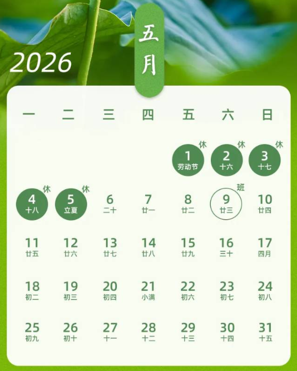 2026年5月1日00:00至5月5日24:00,共计5天