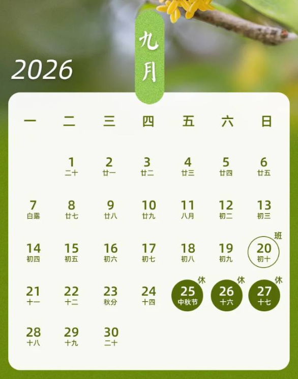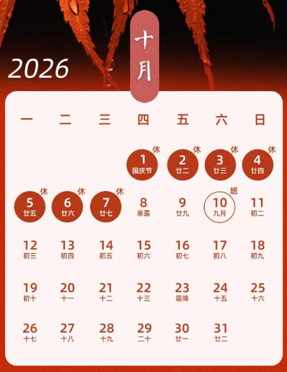 2026年10月1日00:00至10月7日24:00,共计7天