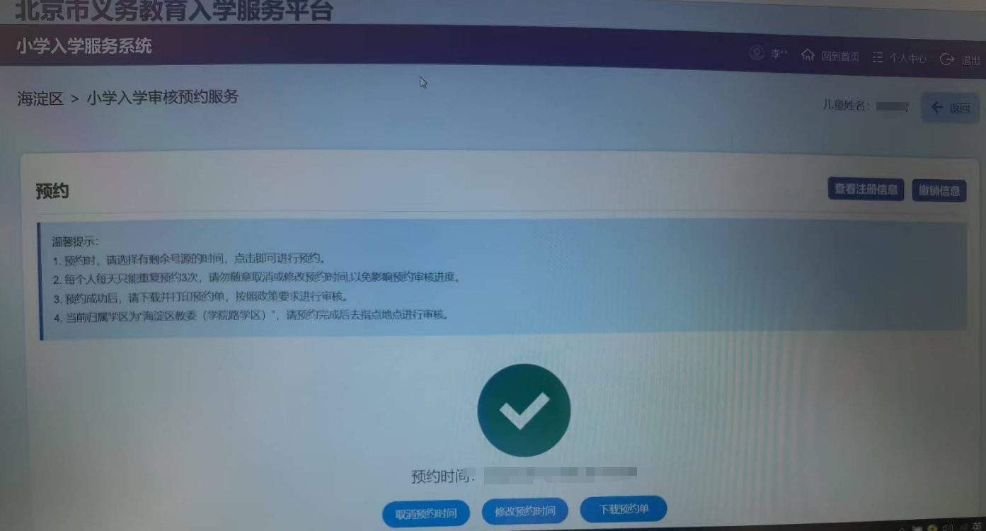 部分城区可以在信息采集系统上直接预约,预约页面参考如下: