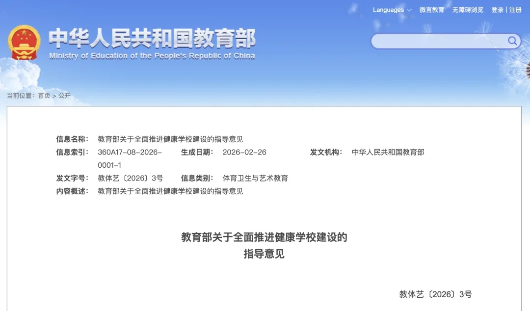 2026年教育部最新指导意见明确,新学期中小学课间延长至15分钟,保障学生每日综合体育活动不低于2小时;大中小学每学年设立劳动周,落实必修课程要求,推动劳动教育与实践育人深度融合,全面提升学生身心健康水平,详情请看本文。