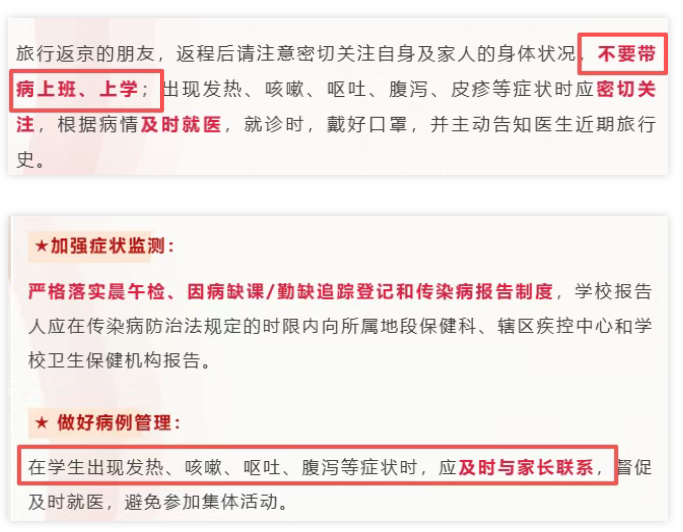 北京疾控!学校做好监控!不得带病上课!