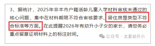 昌平区官方发布《2026年义务教育阶段“幼升小”入学准备提示》,指出去年审核不通过原因集中在【材料期限】&【房产性质不符合标准】这两大方面👇