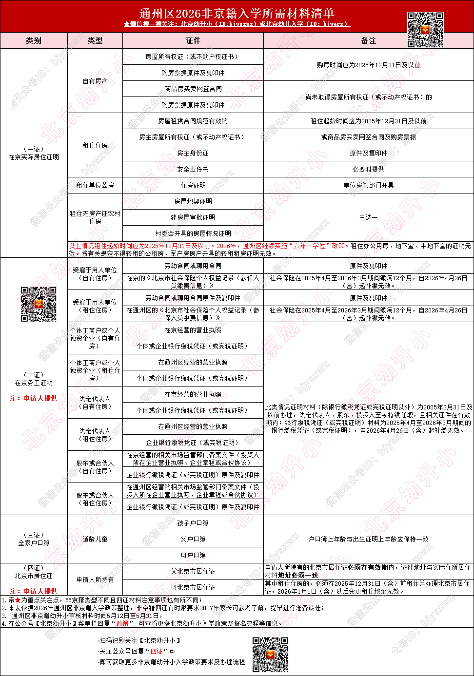 2026年通州区幼升小非京籍四证清单及详细要求