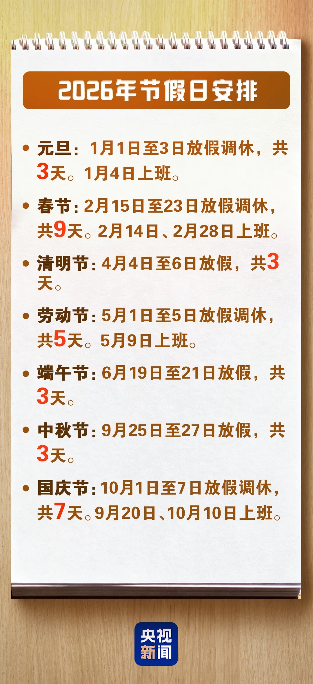 根据国务院办公厅关于2026年部分节假日安排的通知,清明节放假安排: