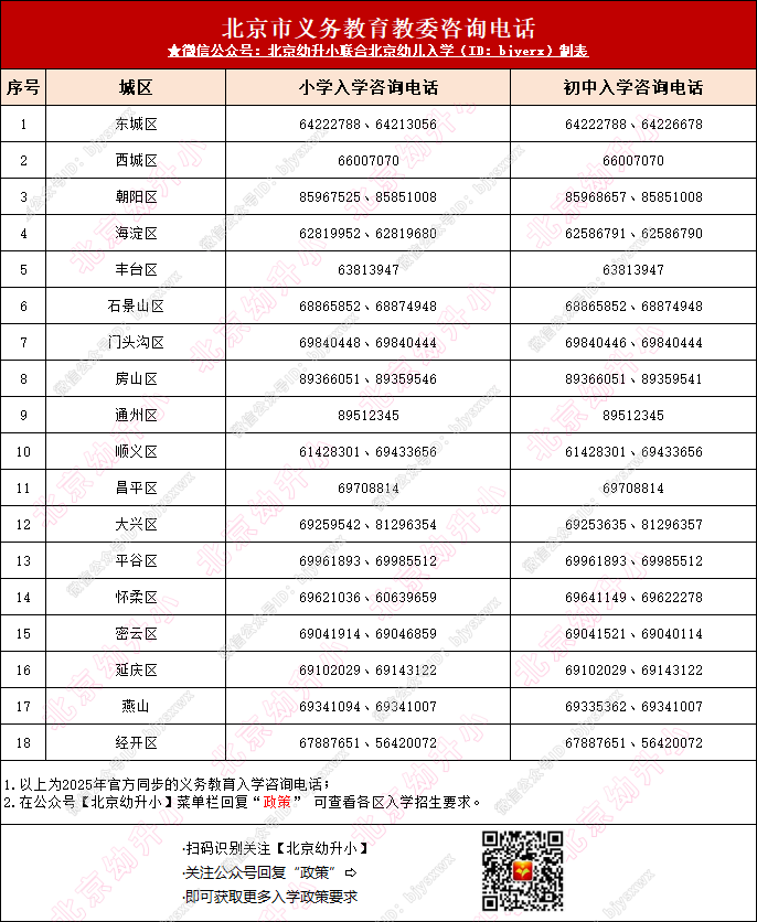 2026年北京幼升小、小升初家长速收藏!本文汇总16区教委咨询电话,政策疑问、材料审核等问题可精准咨询。