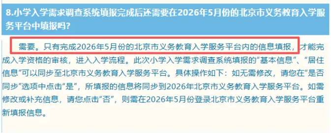 📢在昌平区【2026年小学入学数据调查常见问答】中明确透露,信息采集于2026年5月份在北京市义务教育入学服务平台进行!