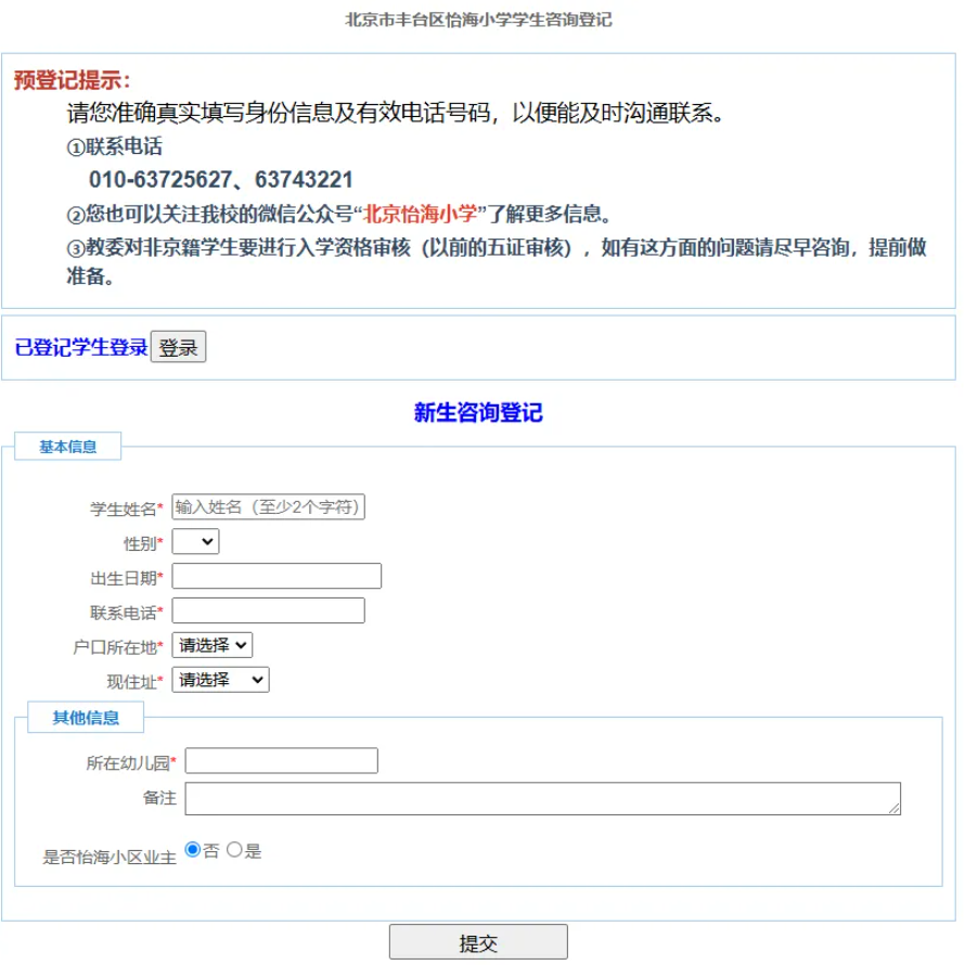 丰台区怡海小学咨询登记