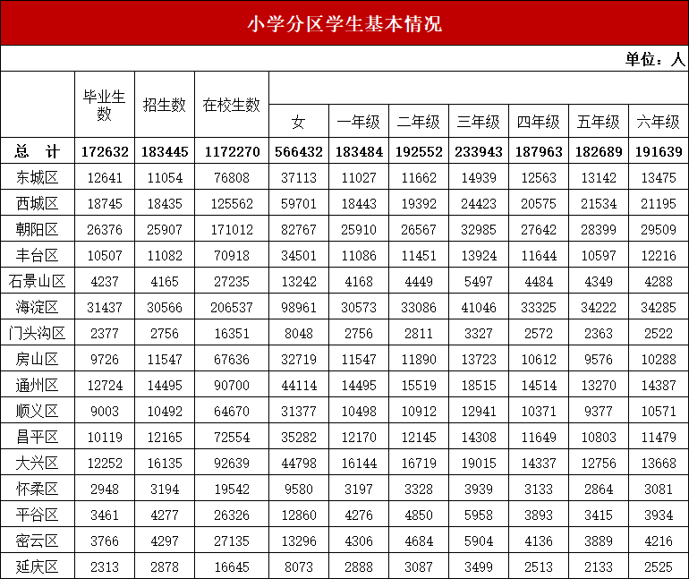 北京市小学分区学生基本情况