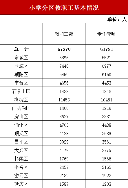 北京市小学分区教职工基本情况