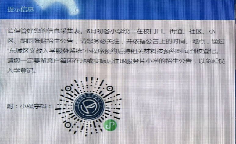 一般填报后很快就显示审核通过,以东城区京籍为例,审核后出现下图信息: