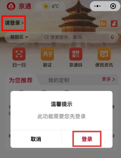 一、登录“京通”小程序