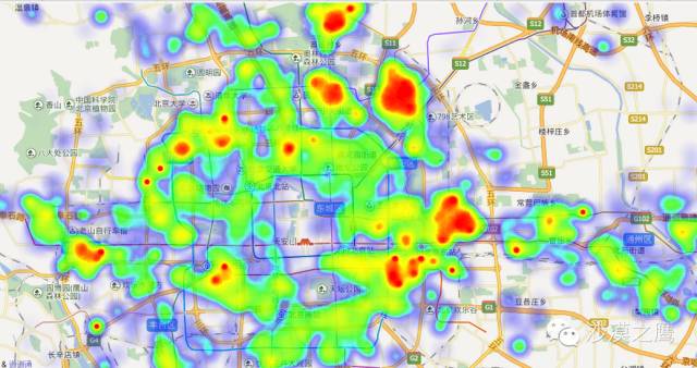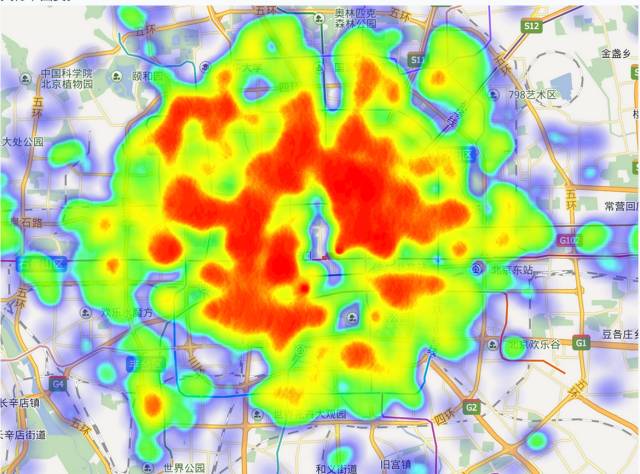 很有意思的是,绿色的区域相当空旷,比如笔者目前所在的三元桥地区,和酒仙桥之间隔了好大一片荒地,晚上夜跑时荒无人烟。