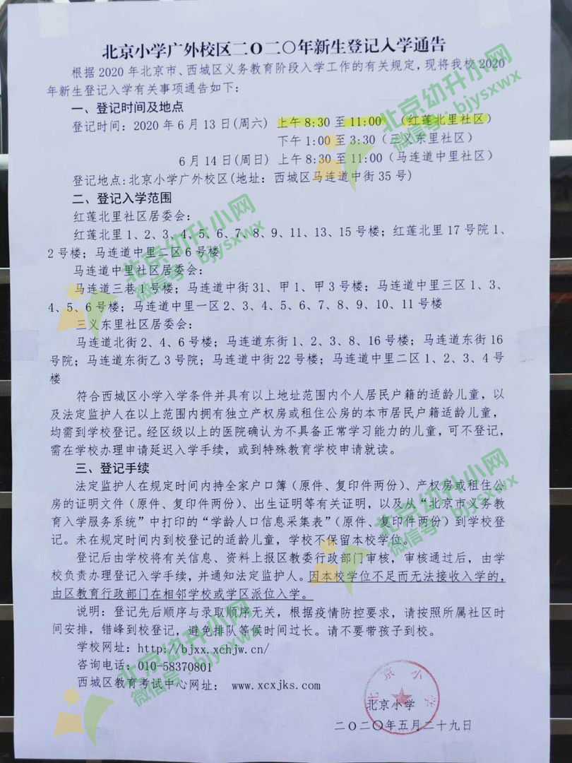 2020年西城区北京小学广外校区招生简章