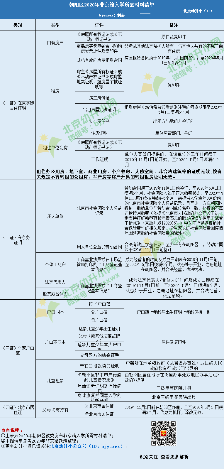 2021年朝阳区非京籍幼升小入学证件要求参考