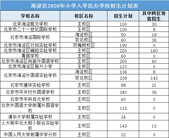 符合海淀区小学入学条件的适龄儿童可以选报有本区走读、本区寄宿学位的民办学校。