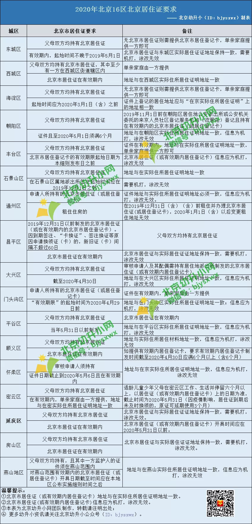 2、北京居住证或居住登记卡一般要求父母双方提供,且证件地址保持与实际居住地址一致(个别城区要求一方提供即可)。