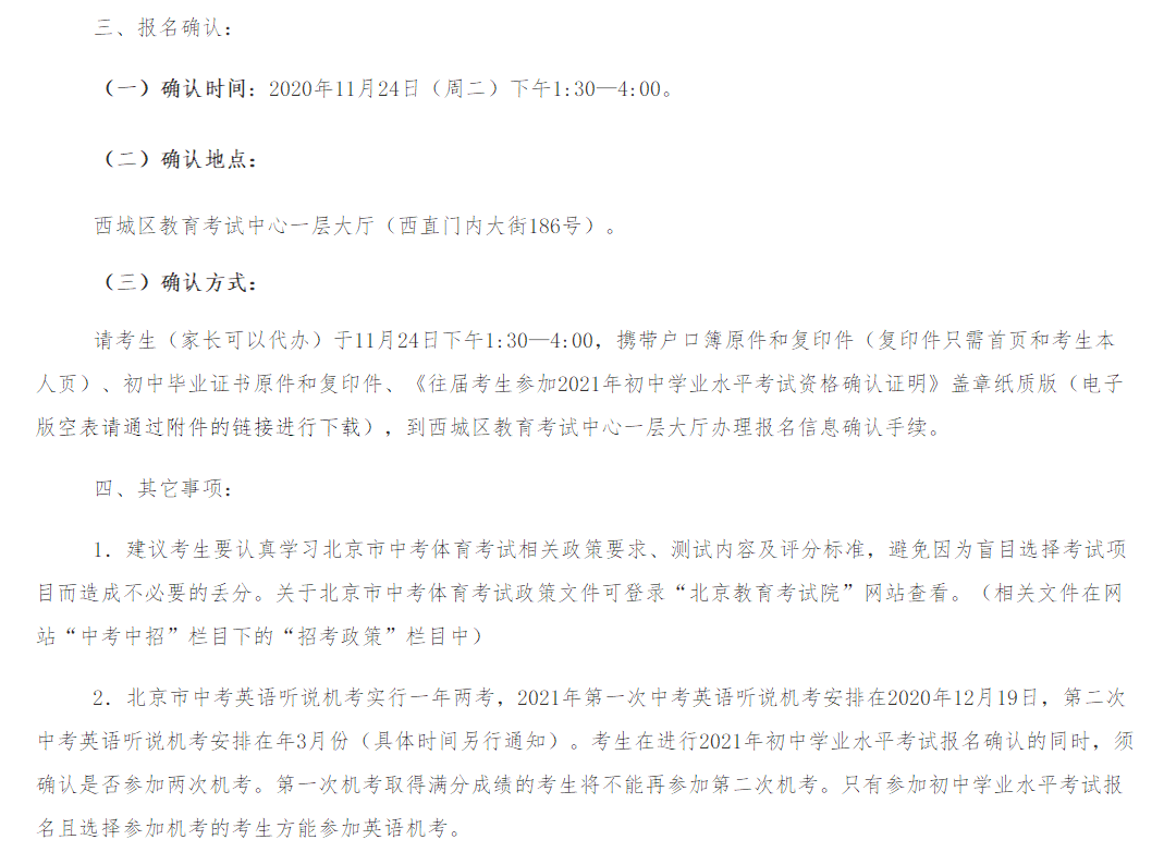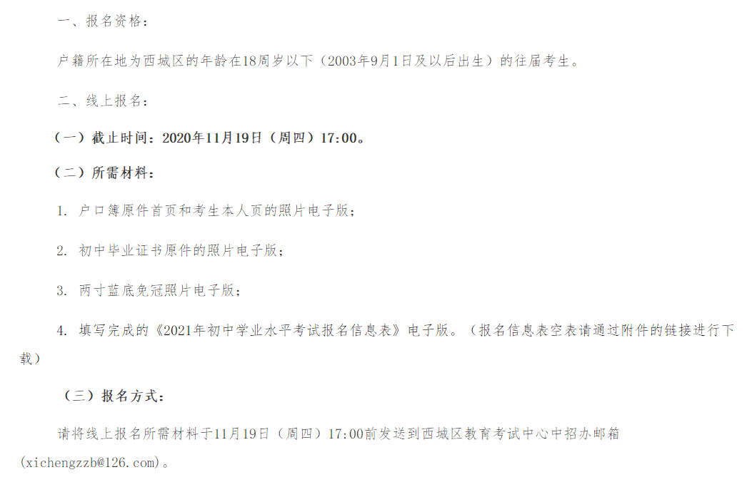 户籍所在地为西城的往届考生报名参加2021年初中学业水平 的通知