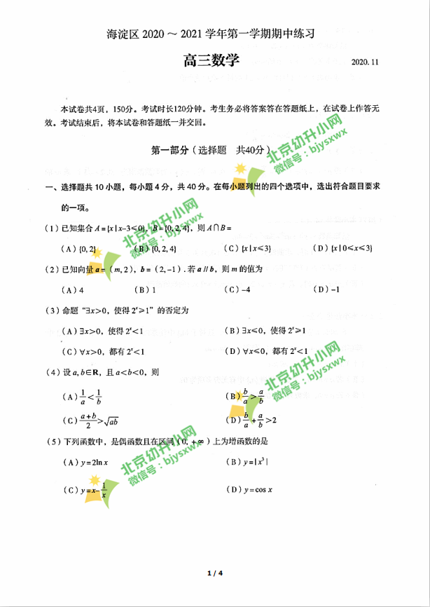 2021年海淀区高三期中 数学试卷如下所示,北京幼升小网团队为您分享2020-2021学年第一学期海淀区高三期中 数学试题。