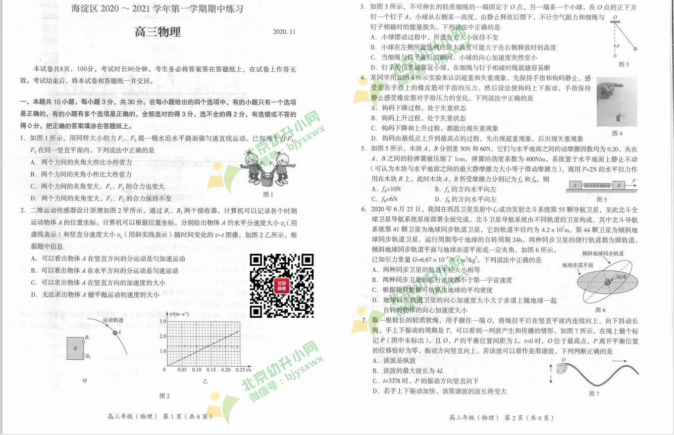 2021年海淀区高三物理期中试卷考了什么内容?北京幼升小网团队为您分享2020-2021学年第一学期海淀区高三期中 物理试题。
