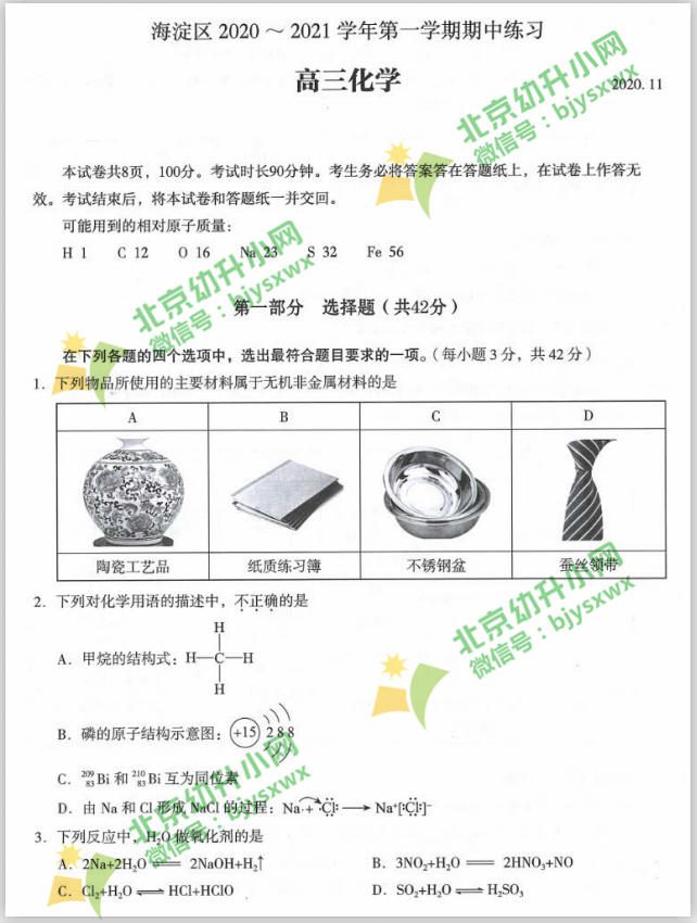 2021年海淀区高三化学期中试卷考了什么内容?北京幼升小网团队为您分享2020-2021学年第一学期海淀区高三期中 化学试题。