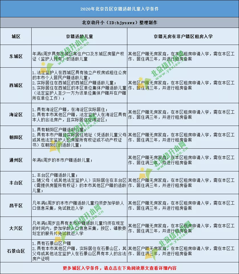 提醒:需要注意的是,依据2020年幼升小要求,部分城区非京籍适龄儿童为全区多校划片派位入学(如西城区非京籍幼升小),非京籍上划片学校的几率降低,建议2021年各位家长重点关注,提早准备相关材料,但最终还需以入学城区入学当年实际要求为准。