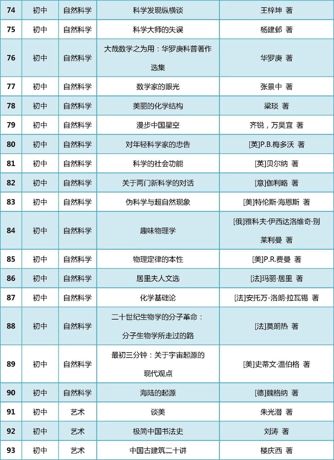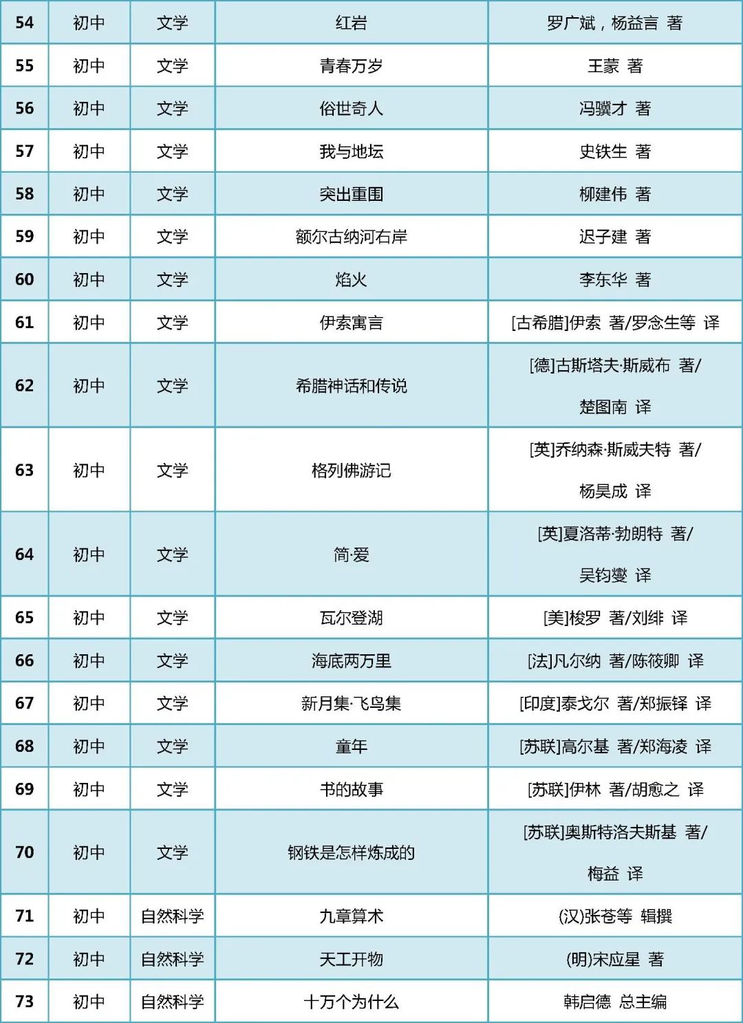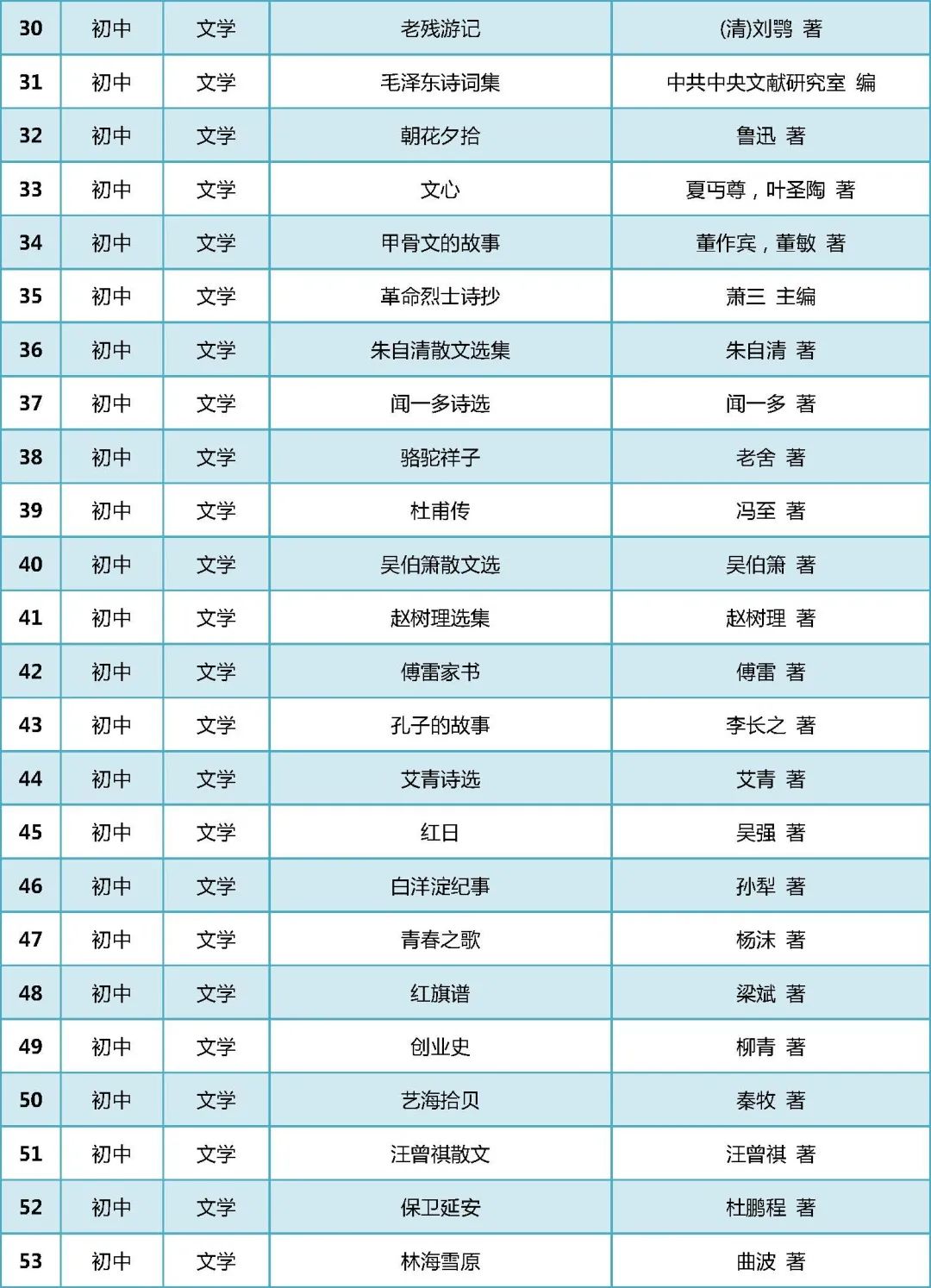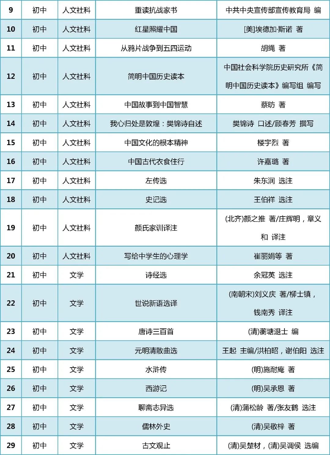 2020年教育部基础教育课程教材发展中心初中阅读指导目录