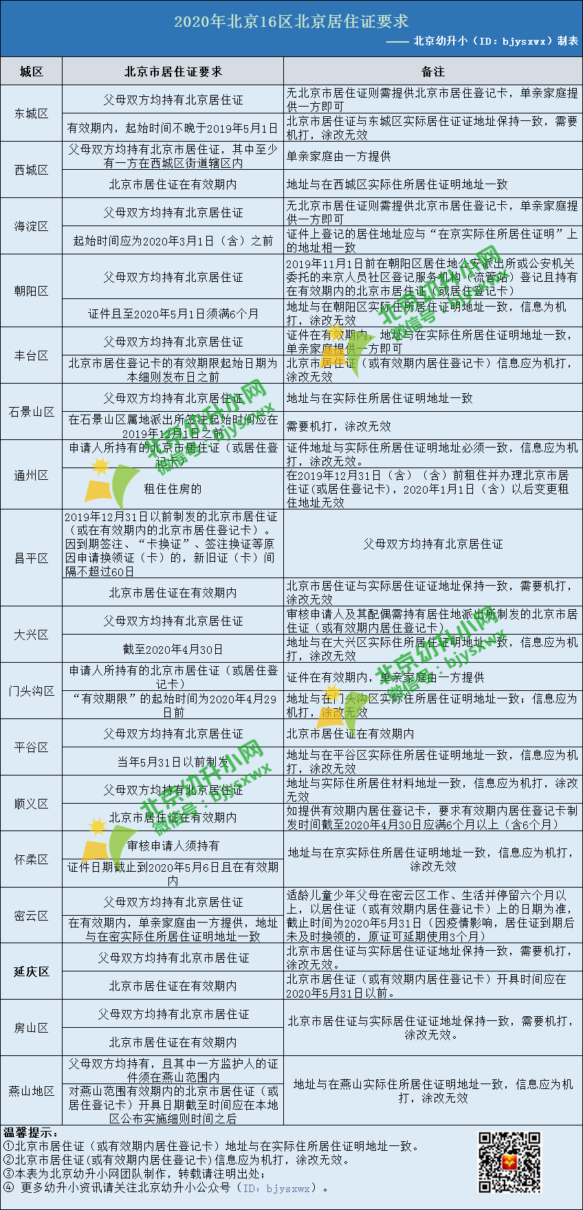 1、【关注时限要求】大部分城区要求半年以上北京市居住证或居住登记卡,各区居住证要求不同,建议大家提前了解入学城区要求提前办理!