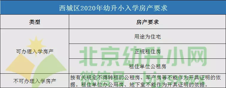 提醒:目前政策中对小产权房、经济适用房没有明确要求;根据2020年西城区幼升小入学政策来看,西城区2020年开始实行六年一学位和新购房新政(自2020年7月31日后,西城区购房并取得房屋产权证书的家庭适龄子女申请入小学时,不再对应登记入学划片学校,全部以多校划片方式在学区或相邻学区内入学)。