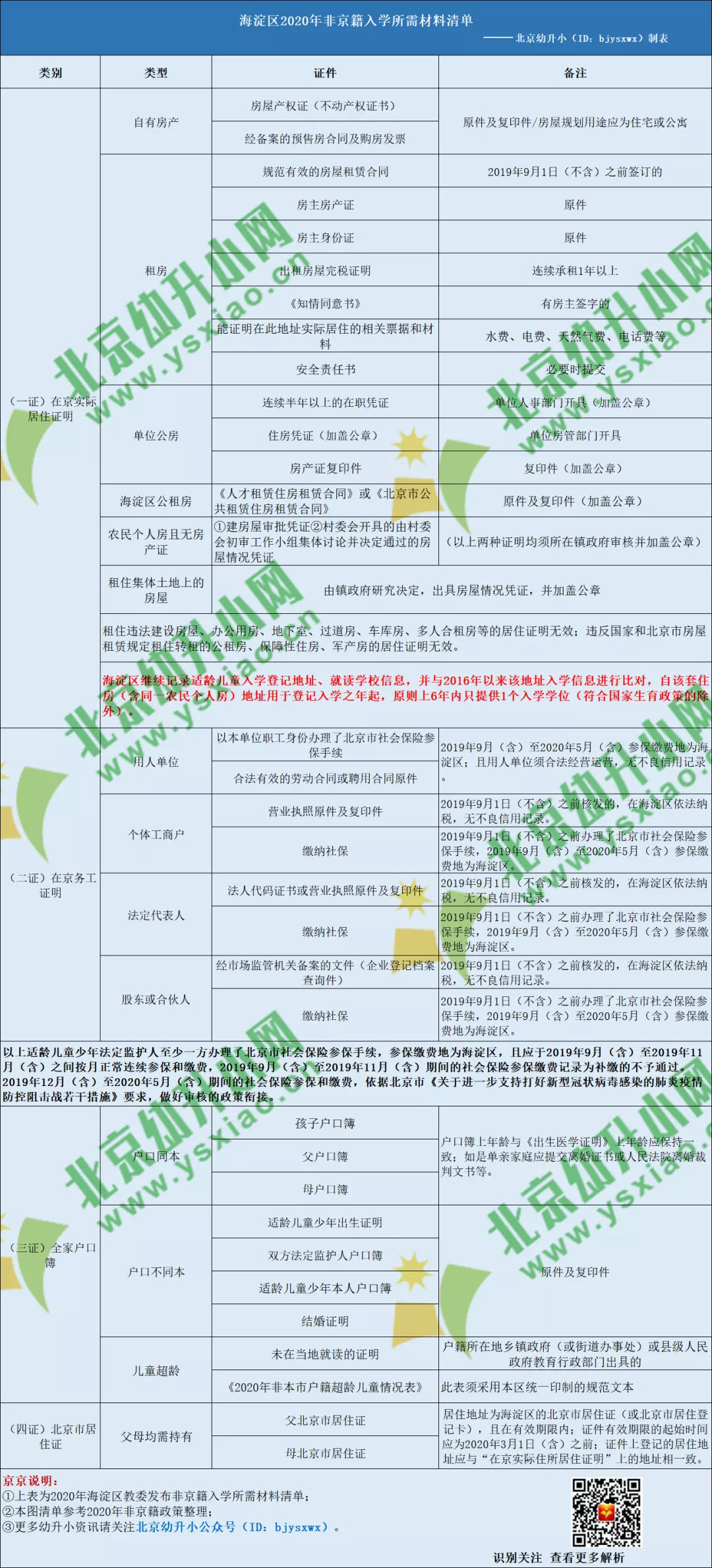 提醒:2021年幼升小家长注意,海淀区2020年非京籍幼升小要求父母至少一方缴纳北京市社保,参保地为海淀区,建议2021年幼升小租房非京籍家长提前参考准备,最终请以入学当年实际要求为准。