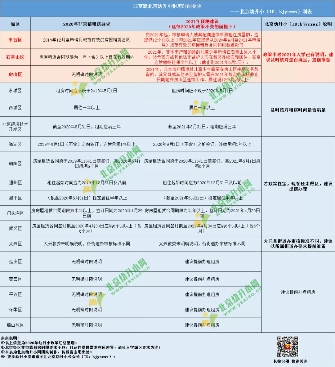 需要提醒大家注意的是,北京16区对非京籍租房时间要求不同,建议大家提前了解入学城区提早准备,北京幼升小网团队整理2020年各区非京籍适龄儿童租房要求,赶紧来看您所在城区是如何要求的。