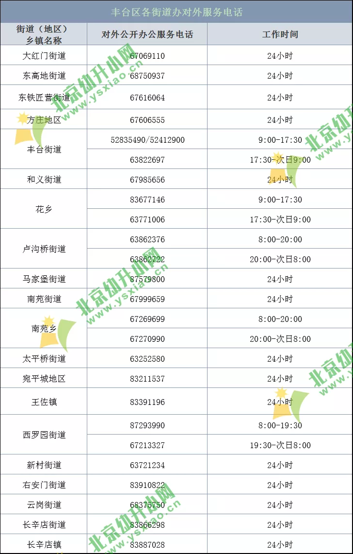 2021幼升小的家长注意啦,北京幼升小网团队整理丰台区各街道办对外服务电话分享给你们,一起来看。