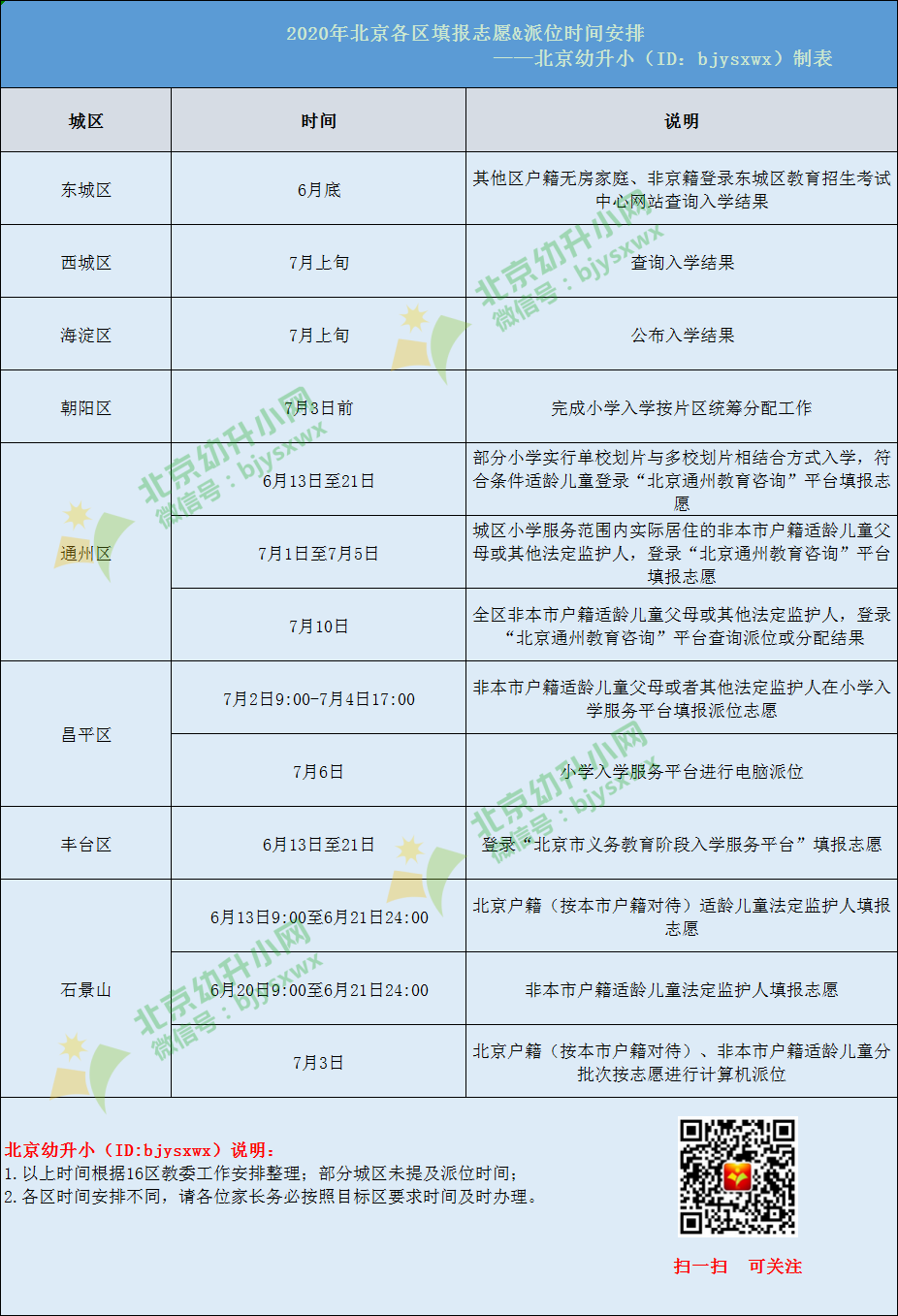 2020年北京各区填报志愿&派位时间安排