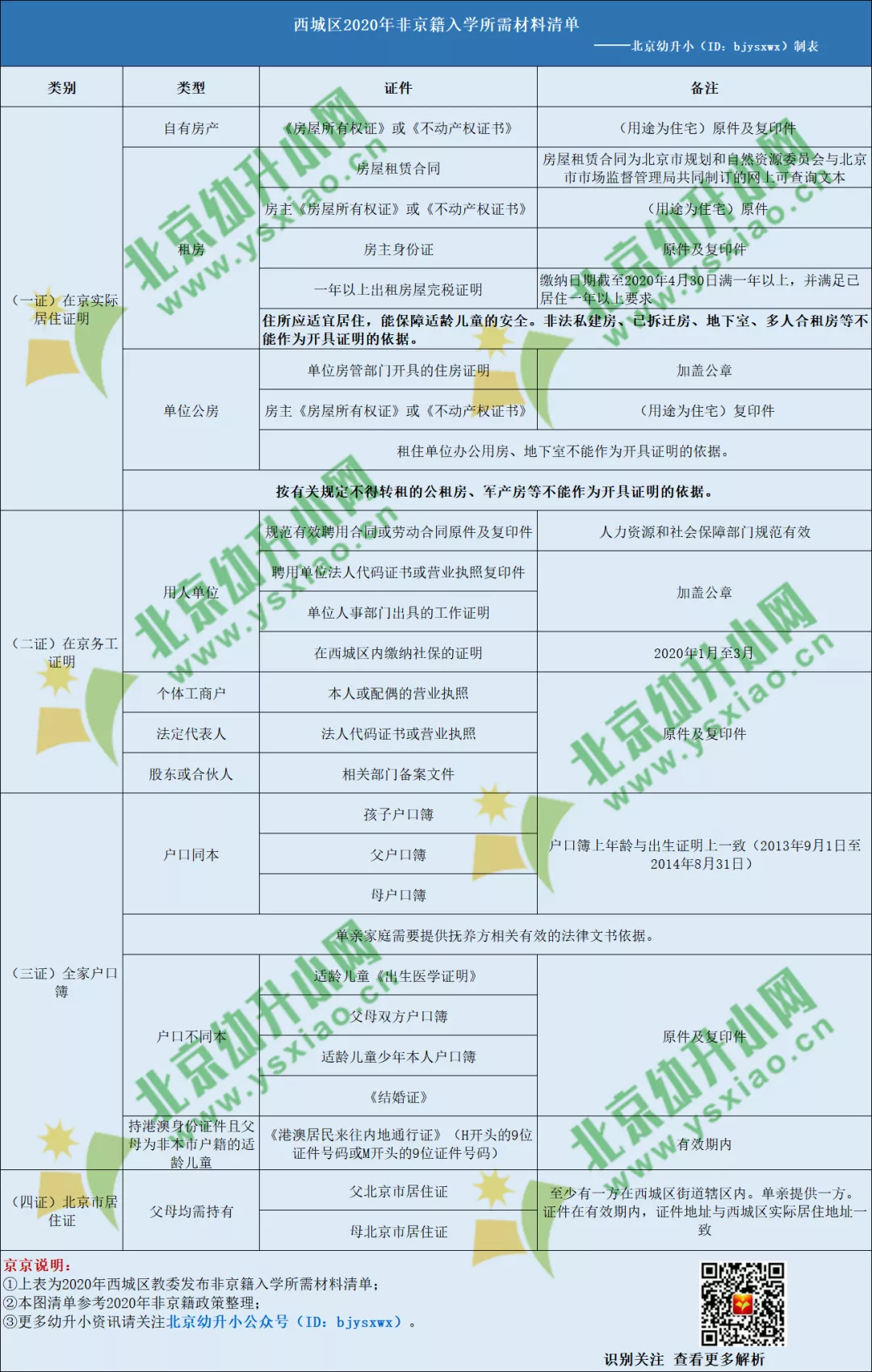 西城非京籍入学需要提供非京籍材料清单参考如下图: