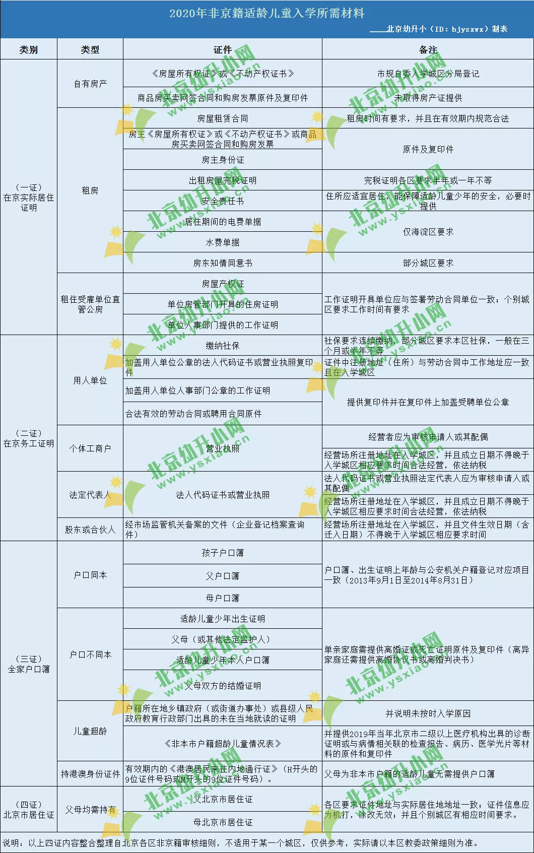 非京籍适龄儿童入学所需材料