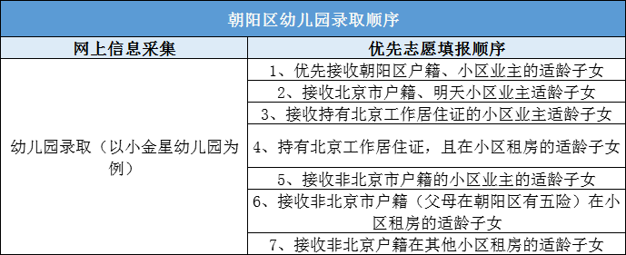 提醒:由于朝阳区采用的是网上信息填报的方式,录取顺序会优先志愿填报顺序,在结合幼儿园自身的招生原则,以下内容仅供参考。