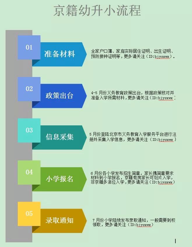 2021年幼升小各区京籍适龄儿童家长注意,整理2020年京籍适龄儿童入学流程,如下图所示: