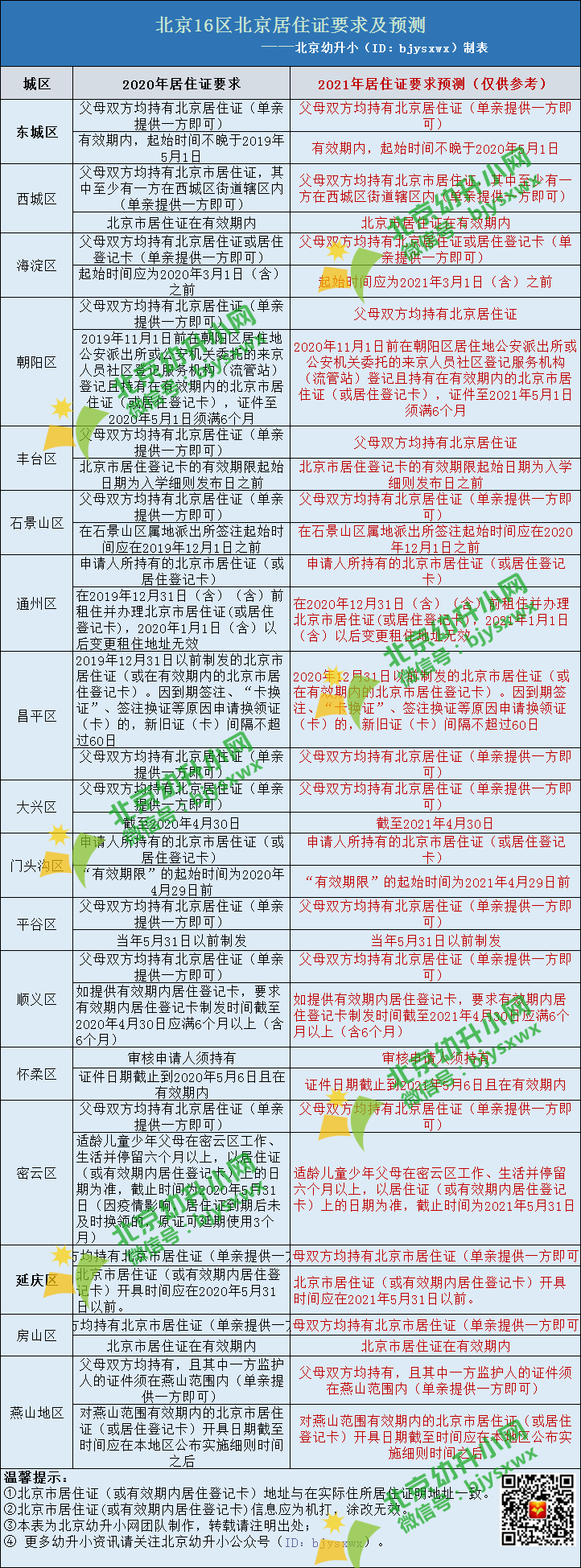 北京各区居住证要求及预测