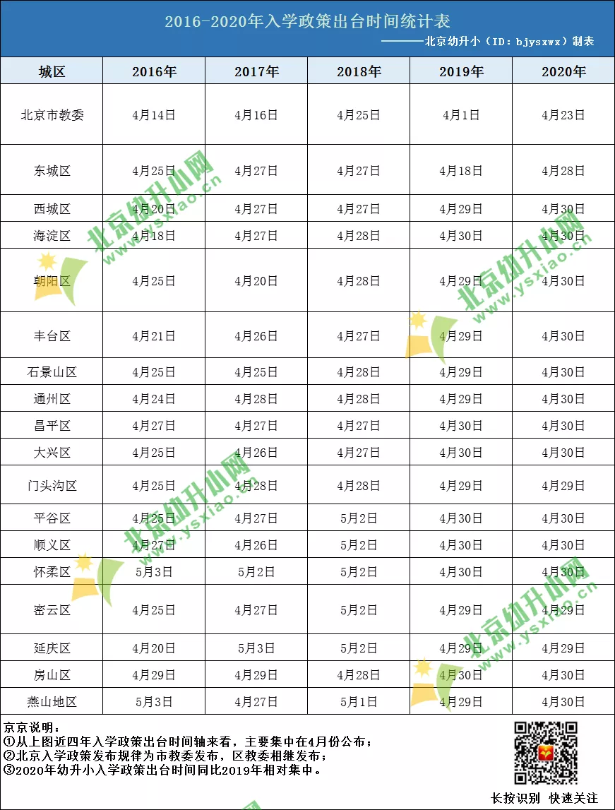 北京幼升小网整理了近几年北京幼升小入学政策出台时间,如下图所示: