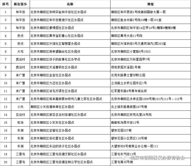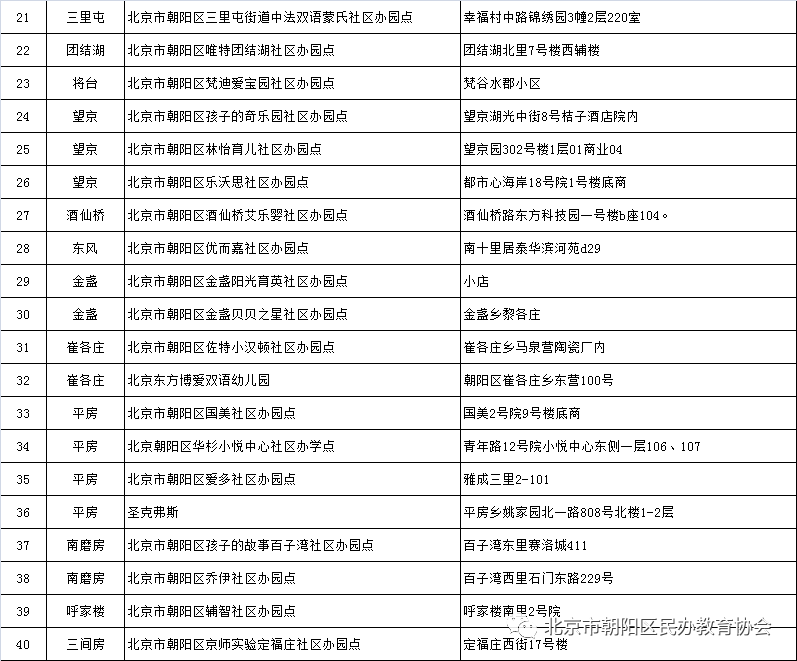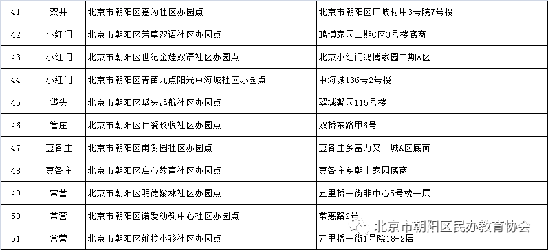 朝阳区新一批51所社区办园点名单