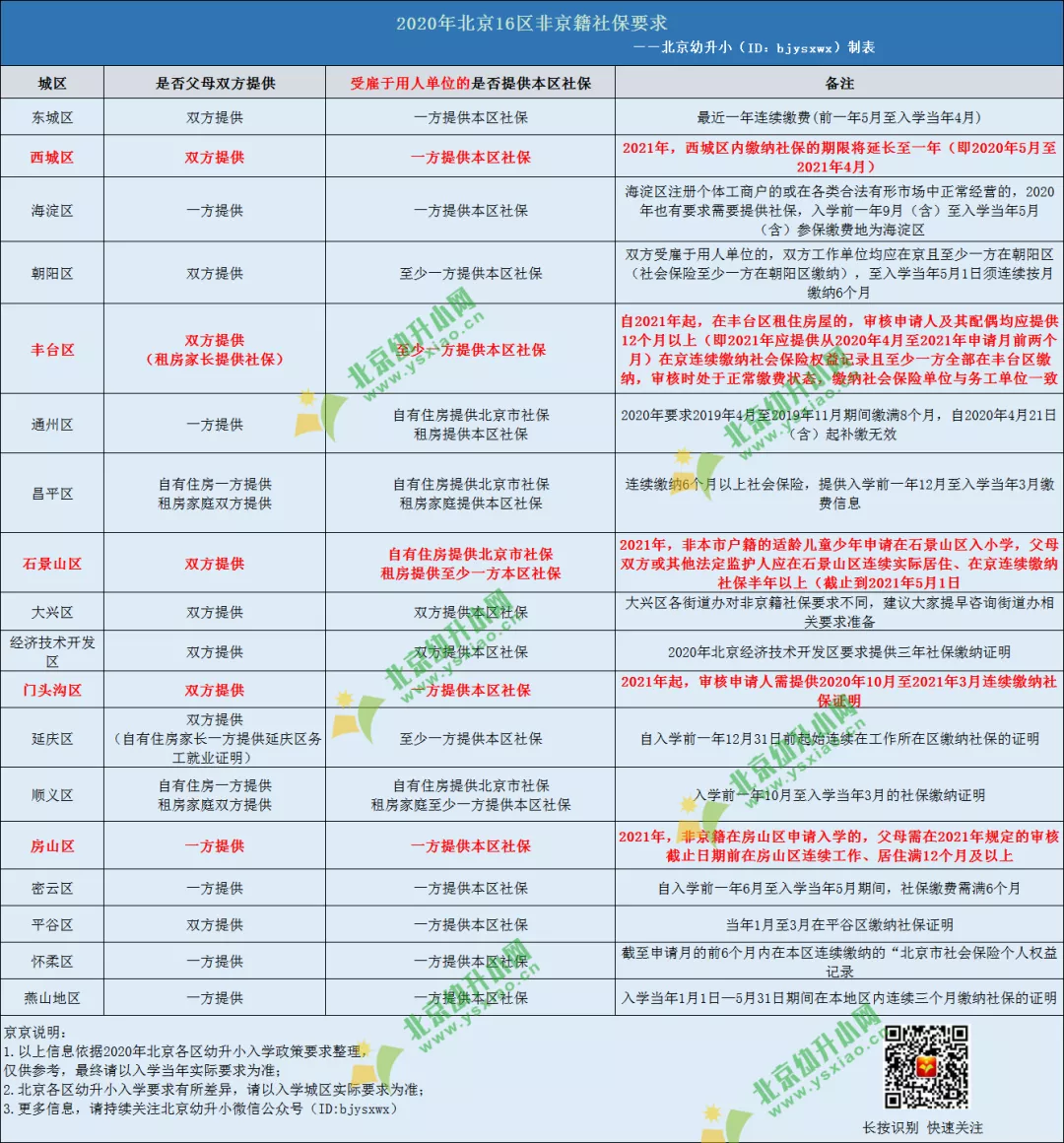 2、其他城区暂未有明确说明,参考2020年政策大部分区要求至少一方本区社保,因此建议2021年幼升小家长提前了解准备。