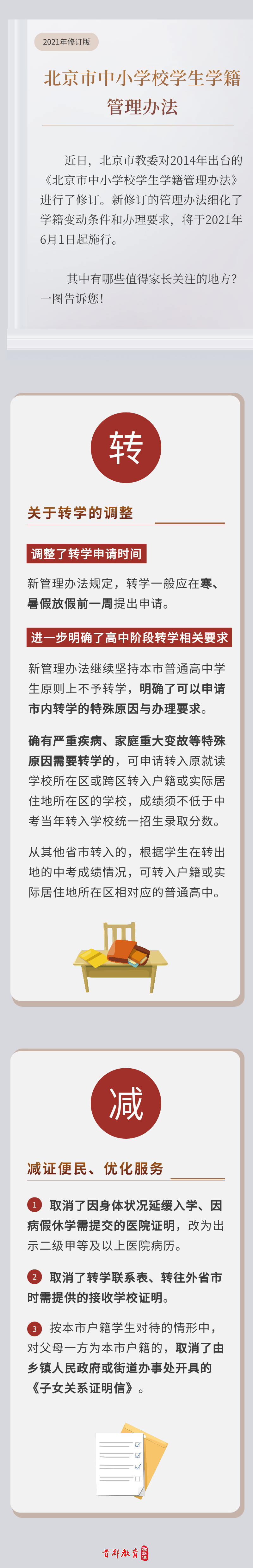 2021年北京“新版”中小学校学生学籍管理办法出炉,转学时间调整,针对转学儿童、超龄儿童入学材料减少。北京幼升小网团队为您分享相关内容。