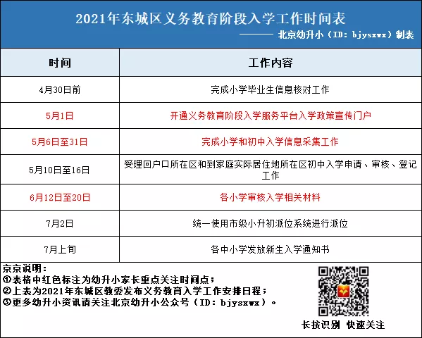 同时,京京还为各位家长整理了东城区2021入学时间工作表,赶紧看下去!