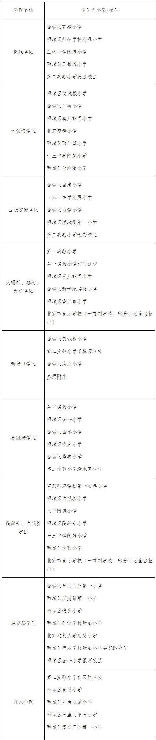 西城区学区划分