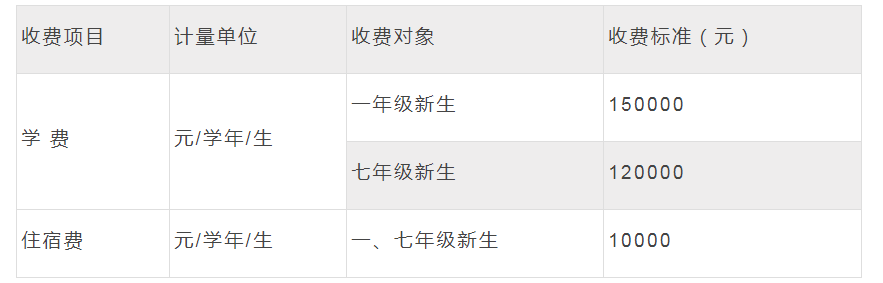 初中:每学年学费99800元另需缴纳6000元(一次性费用)
