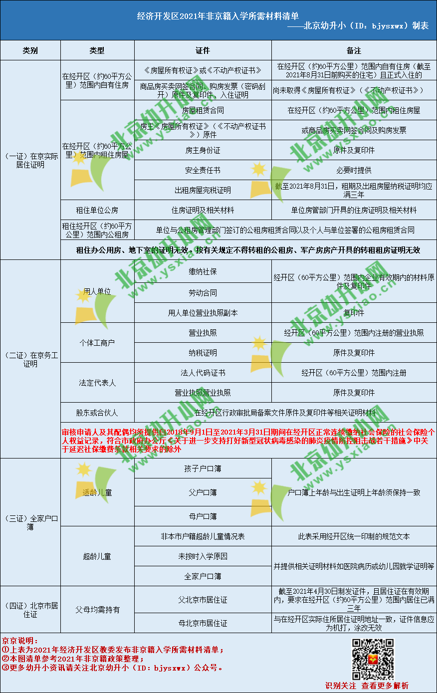 2021幼升小的家长注意,北京幼升小网团队整理了北京经济技术开发区非京籍入学材料清单,供各位家长参考。